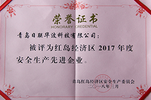 青島日聯(lián)華波科技有限公司獲得青島市紅島經(jīng)濟(jì)區(qū)二〇一五年度安全生產(chǎn)先進(jìn)企業(yè)稱號;