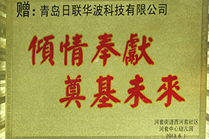 青島日聯(lián)華波科技有限公司獲得河套街道西河套社區(qū)中心幼兒園“傾情奉獻(xiàn),奠基未來”稱號;