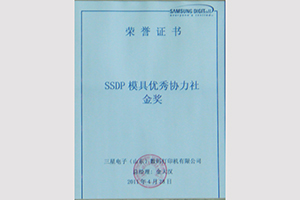 青島三巨電子部件有限公司獲得三星電子(山東)數(shù)碼打印機有限公司SSDP模具優(yōu)秀協(xié)力社金獎;