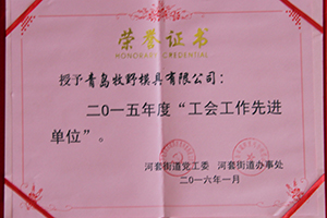 青島牧野模具有限公司獲得青島紅島經濟區二〇一五年度企業工會工作先進單位;