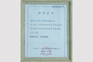 青島三巨電子部件有限公司在三星電子(山東)數碼打印機有限公司舉辦的KINGBIRD模具開發過程中綜合能力評價獲得模具類優秀協力社大獎;